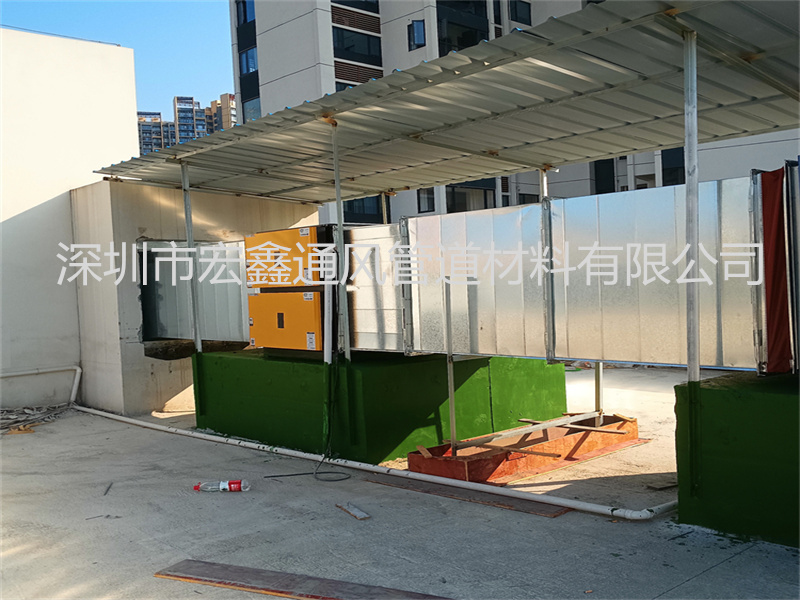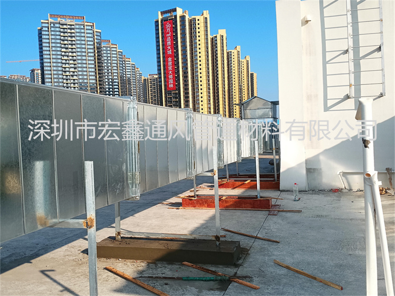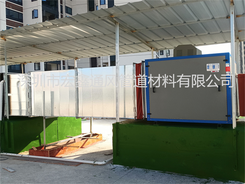 深圳市龍(lóng)崗區新生路君華時代花園5棟(dòng)#商業公共排油煙(yān)管道由我司承接施工安裝,工程總(zǒng)施工期為30天,一共四層,煙(yān)井使用1600x500mm尺(chǐ)寸的共板法蘭風管安裝製作,商鋪的排油煙管(guǎn)道是用1000x400mm和800x400mm的共板法蘭(lán)風管安裝,樓頂的排油煙風櫃為18.5KW的九州牌離心風櫃,淨化器為32000風量的低空油煙淨化器,靜音和排煙效果都(dōu)非常(cháng)的好,客戶反饋過來的信息(xī)是使用的很滿意。