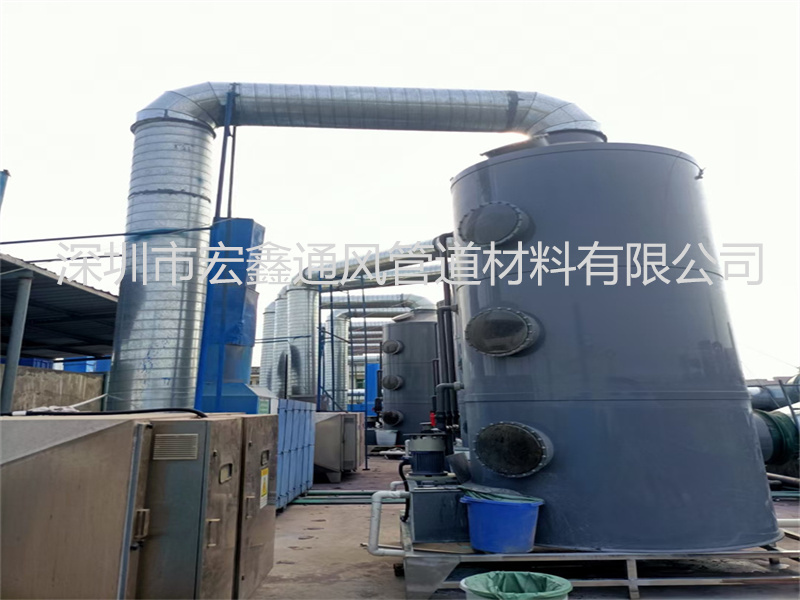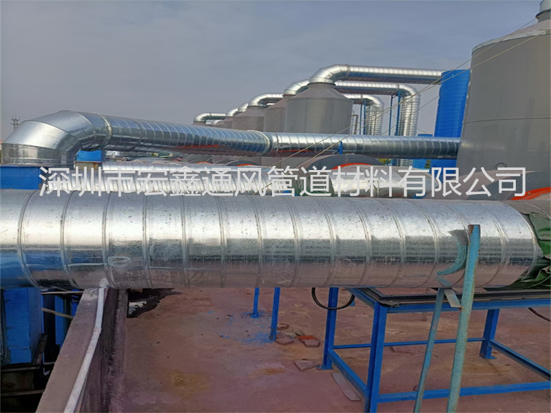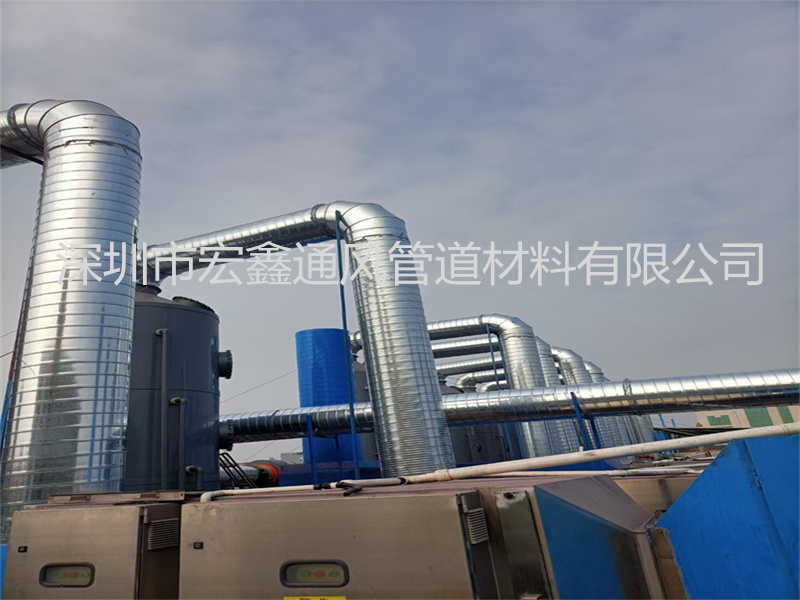 深圳(zhèn)寶安沙井某汽車配件公司烤漆車間排煙管道安裝工程(chéng),廢氣處理(lǐ)設備采用我司提(tí)供的20000風量活性炭箱,20000風量(liàng)PP噴淋塔,15KW工業離心(xīn)風機,車(chē)間廢氣排煙管道安(ān)裝總長度為165米,采用300mm,400mm,再轉600mm的(de)鍍鋅螺(luó)旋風管作為車間廢氣管道安裝處理管道,經過環保淨化處理(lǐ)設備後,空氣淨化後(hòu)高空排放,符合國家環保相關政策要求。工(gōng)程總的施工期(qī)是10天順利完工。